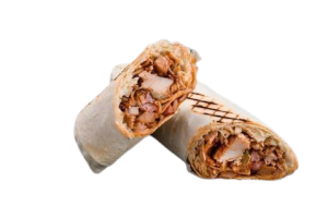Chifla Brioche cu două pârjoale de vită și dublu cașcaval Cheddar, sos chilli, sos usturoi & BBQ, salată iceberg, roșii și sos de susan.